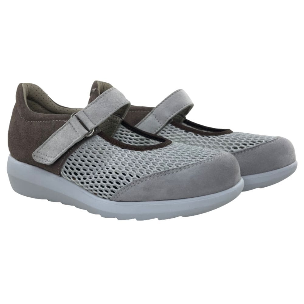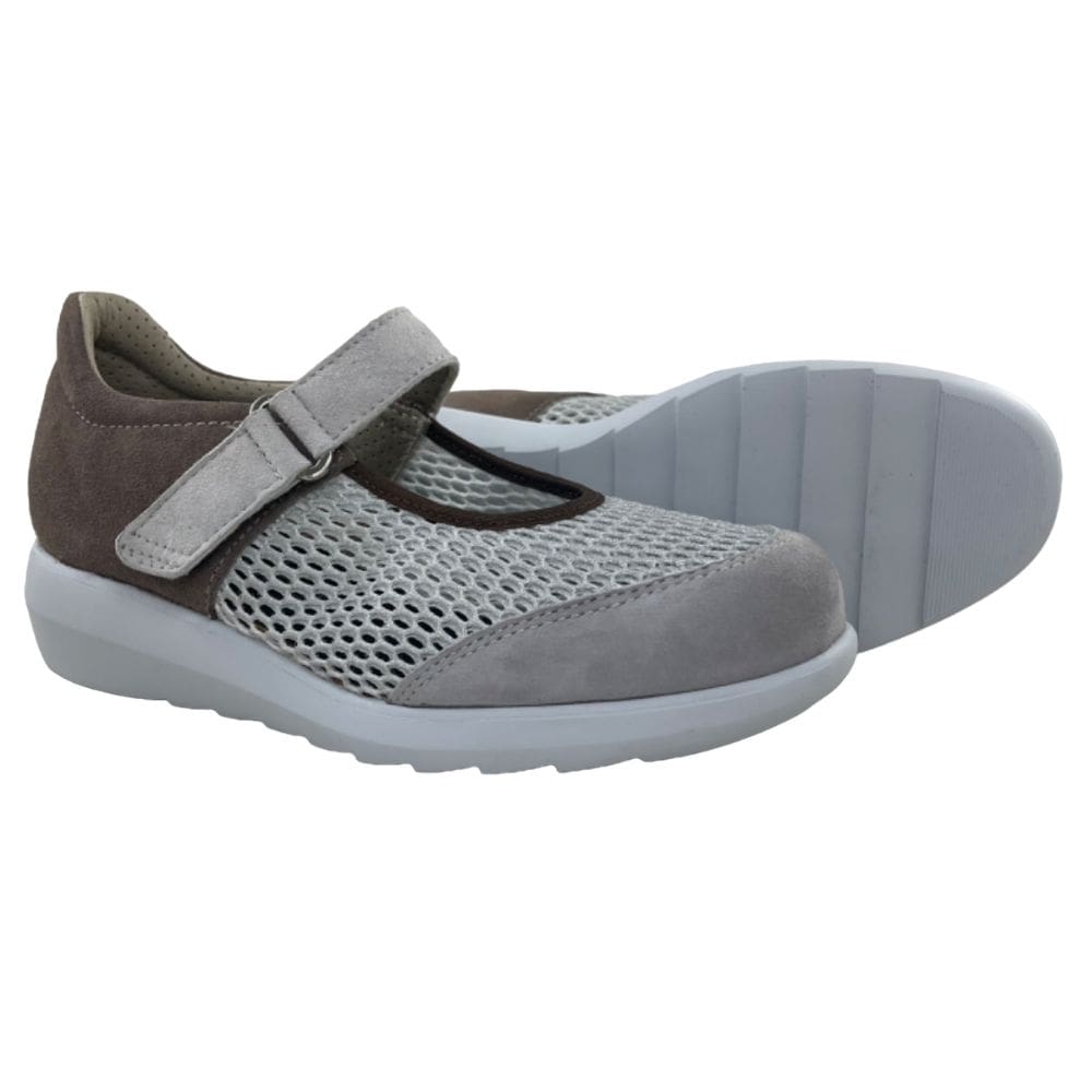 – Zapato para mujer con correa de velcro. Elaborado en piel de ante suave de primera calidad, de gran confort y máxima adaptabilidad al pie (sin oprimirlo) y rejilla que permite la ventilación del pie. Ideal para personas con los pies delicados.